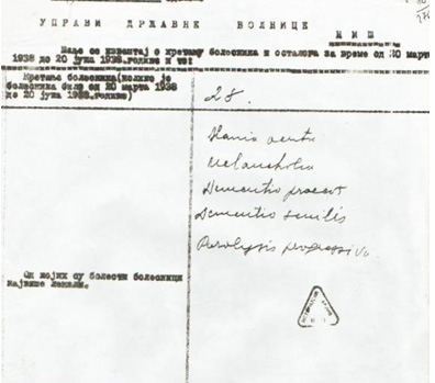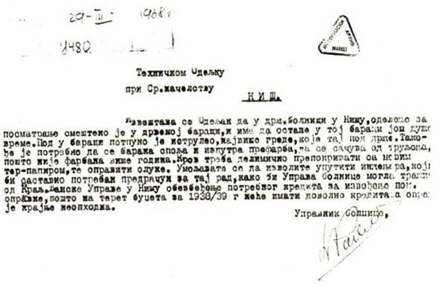 Упоредо са развојем душевне болнице у Горњој Топоници у оквиру Опште државне болнице постоји одељење за посматрање смештено у посебној бараци где су лечени болесници са дијагнозама : меланхолија, дементио сенилис, паралисис прогресива – подаци из Историјског архива Ниша.